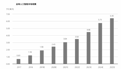 人工智能将提升社会劳动生产率,特别是在有效降低劳动成本、优化产品和服务、创造新市场和就业等方面为人类的生产和生活带来革命性的转变。全球范围内越来越多的政府和企业组织逐渐认识到人工智能在经济和战略上的重要性,并从国家战略和商业活动方面涉足人工智能。全球人工智能市场将在未来几年经历现象级的增长。德勤预测,到2025年,世界人工智能市场将超过6万亿美元,2017~2025年复合增长率达30%。