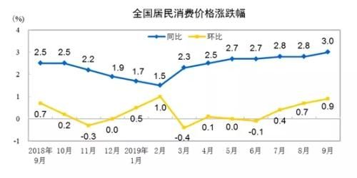 9月份CPI同比上涨3%,涨幅较上月扩大0.2个百分点。继2013年11月后,再次回到“3时代”。