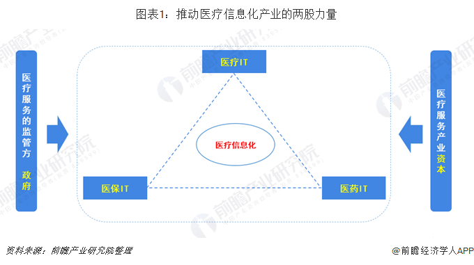 围绕三医产业,有两股核心的力量推动变革和升级——政府和市场。其中,政府已经将医疗信息化定位为医改的四梁八柱之一,对其发展方向有着明确的指引。同时,政府也是医疗健康服务产业的监管方,产业“游戏规则”的制定者,奠定了产业的制度基础和基本形态。医改无疑将推动整个医疗健康服务产业的业态升级、价值链重塑,而作为产业的支撑方——医疗信息化也需要配合医疗健康服务体系的升级而转变和发展。以商保、互联网企业为代表的商业力量则是医疗健康服务产业的新势力,也是推动医疗信息化发展的另外一股不可忽略的重要力量。
