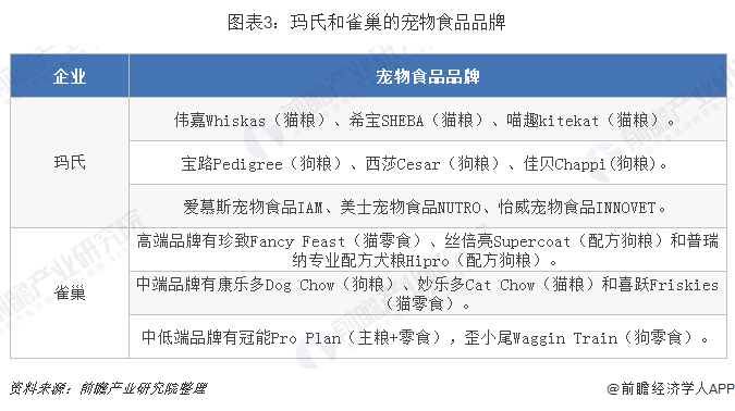玛氏和雀巢的宠物食品品牌数量众多