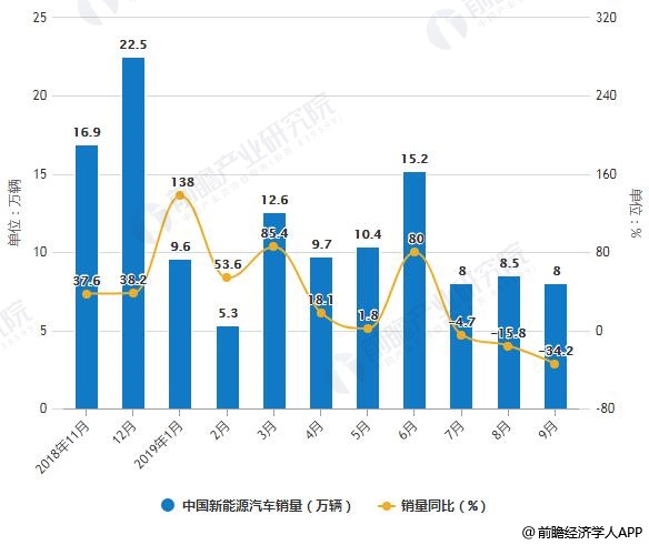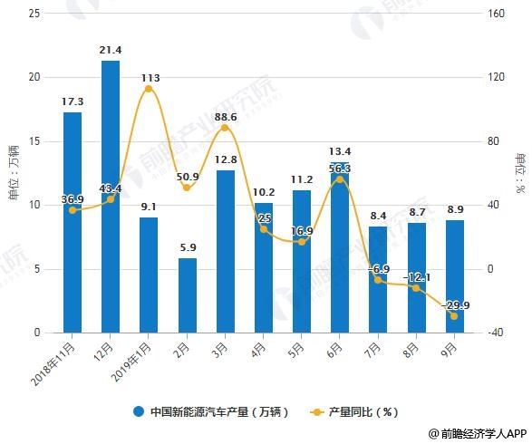 2018-2019年9月中国新能源汽车产销量统计及增长情况