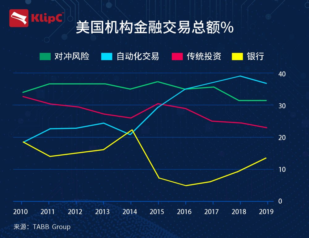 在过去的十年中,量化基金的数量和市场份额大幅增长,2018年排名前20位的对冲基金(按向基金经理支付的费用排序)中,有一半主要是量化基金。
