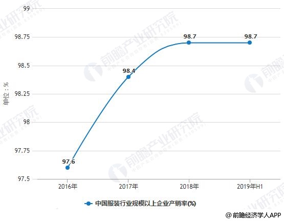 2016-2019年H1中国服装行业规模以上企业产销率变化情况