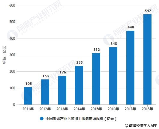 3、2018年中国激光产业下游加工服务市场规模超过500亿元