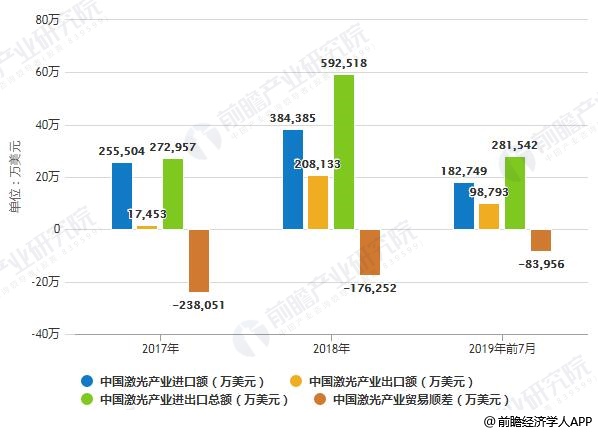 2017-2019年前7月中国激光行业进出口额变化情况
