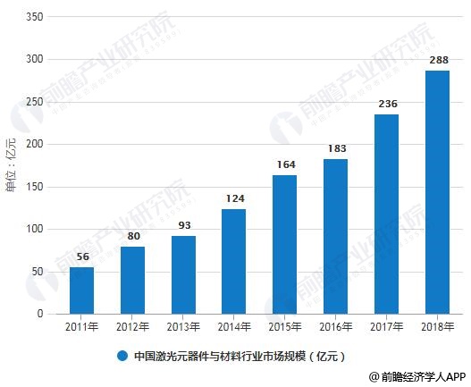 2、2018年中国激光元部件市场规模达到288亿元