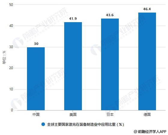 全球主要国家激光在装备制造业中应用比重对比情况
