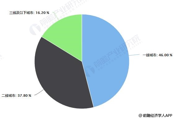 由于即时配送对于产品供应链、配送物流等要素的要求较高,目前,高线城市的普及度更加广泛。2018年我国即时配送订单量一、二线城市的市占率为46%和37.8%,可以看出行业订单高度集中在高线城市。但随着我国物流行业的发展以及互联网的接收程度的加高,三、四线及以下城市的即时配送市场订单将会有较大增长空间。综合来看,我国即时配送市场渠道的下沉空间巨大。