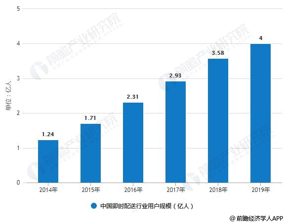 2014-2019年中国即时配送行业用户规模统计情况及预测
