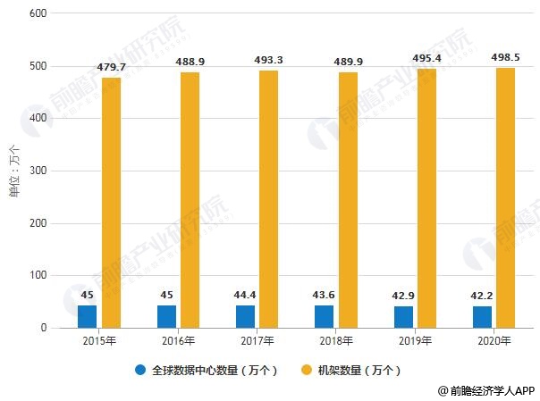 2015-2020年全球数据中心数量、机架数量统计情况及预测