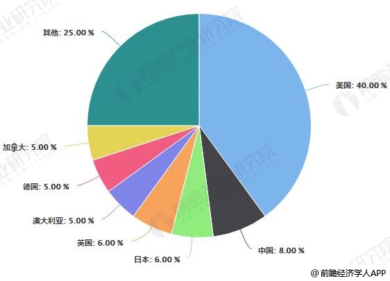 根据Gartner咨询统计数据,全球数据中心数量在2018年将达到43.6万个,主要集中分布在美国、欧洲、日本、中国等地区,其中美国在全球市场份额最大。美国数据中心建设起步早,目前已经占据全球40%的市场份额,而中国和日本位居其次,分别占有8%和6%。