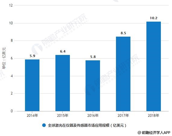 5、2018年全球激光仪器与传感器市场规模达10.2亿美元