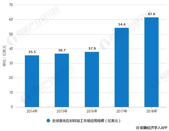 2、2018年全球激光材料加工市场规模达61.6亿美元