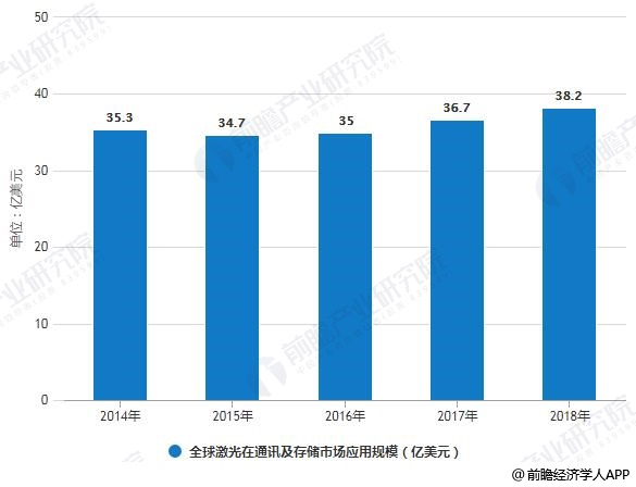 3、2018年全球激光通讯及存储市场规模达38.2亿美元