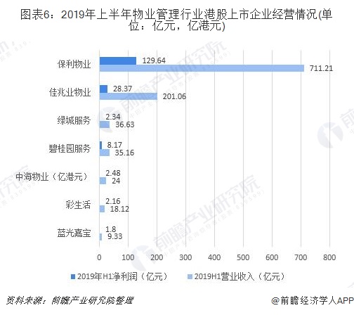 港股市场成为众多具备房企大股东背景的物业管理公司集聚地,碧桂园服务、彩生活、佳兆业物业、中海物业、绿城服务等多家企业均在香港上市。从2019年上半年港股上市企业经营状况也可以看出,物业管理行业处于上升阶段。
