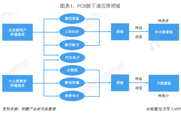 七大领域需求带动PCB成长。印制电路板的终端需求可分为企业级用户需求和个人消费者需求。其中,企业级用户需求主要集中于通信设备、工控医疗和航空航天等领域,相关PCB产品往往具有可靠性高、使用寿命长、可追溯性强等特性,对相应PCB企业的资质认证更为严格、认证周期更长;个人消费者需求主要集中于计算机、移动终端和消费电子等领域,相关PCB产品通常具有轻薄化、小型化、可弯曲等特性,终端需求较大,要求相应PCB企业具有大批量供货能力。