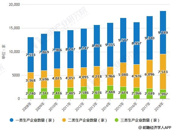 2008-2018年中国医疗器械各类生产企业数量统计情况