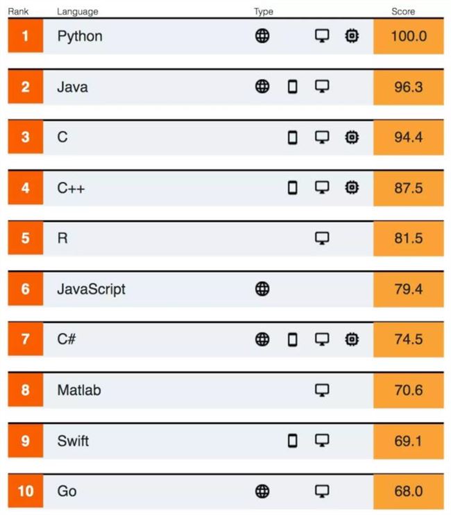 对此,不少网友感慨称:人家把语言创造出来三十年了,都要退休了,可我还没学会~不过这并不影响它成为时下最流行的编程语言。今年 9 月,IEEE Spectrum 编程语言排行榜发布,Python排名第一,依然领先Java和C语言。