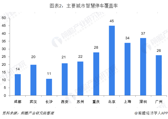 智慧停车的概念从2014年出现至今已经过去5年,市场也达到百亿规模,但是发达城市智慧停车覆盖率仍然较低。北上广深智慧停车平均覆盖率约为35%,仍有较大开发空间。