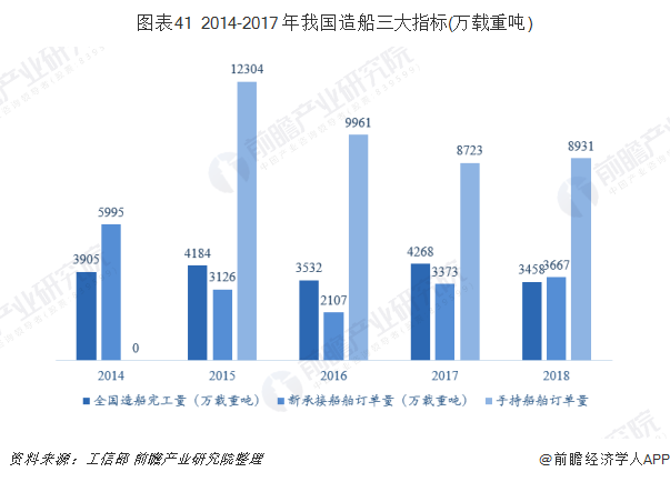 2019年,受国际贸易摩擦和地缘政治因素影响,全球经济增长延续疲弱态势,船东订造新船越发谨慎。散货船、油船和大型集装箱船新增需求仍然低迷,但豪华邮轮、LNG船和支线集装箱船新船需求有望继续保持活跃。预测2019年全球新船成交量为5000-6000万载重吨;造船完工量在9000万载重吨左右;年底手持订单量有望保持在1.8亿载重吨水平。预计2019年,我国造船完工量约3600万载重吨,新接订单量与上年基本持平,年底手持订单量维持在8000万载重吨左右。