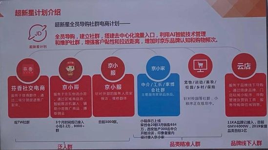 虎嗅联系京东相关负责人了解到:“这是内部团队基于京东供应链、微信势能、小程序红利作出的创新计划,主要以社群为主,目前全国9万个群已经做到6亿GMV。”