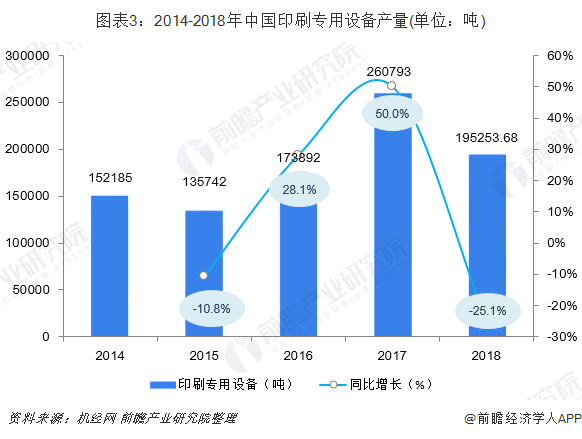 2018年,机床工具市场、食品机械市场、印刷机械市场均出现下滑。根据机经网数据,2018年,中国数控金属切削机床产量为19.06万台,同比下降14.53%;2018年,中国印刷专用设备产量为19253.68吨,同比下降25.1%。