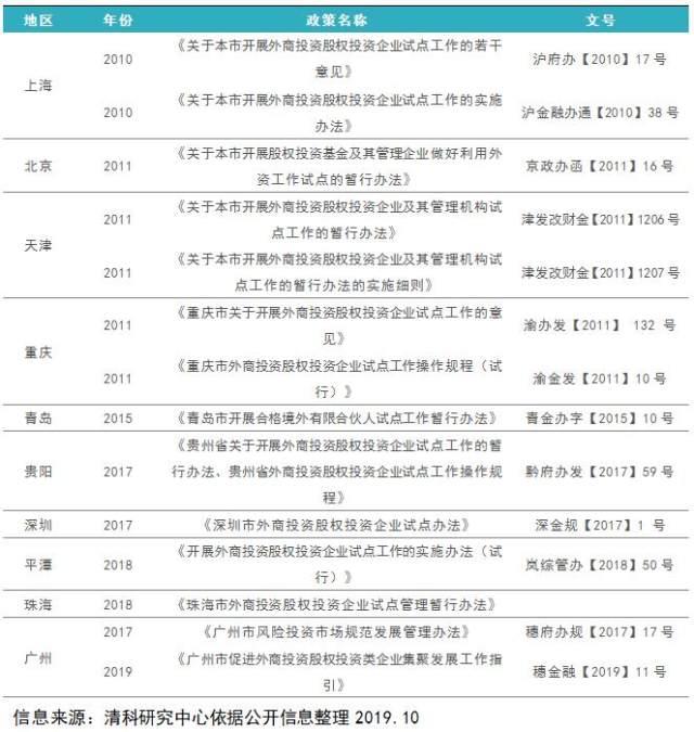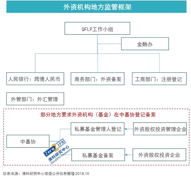 地方层面,各地方政府对于外资机构(基金)设立的要求不同。目前,仅有北京、上海、天津、重庆、青岛、贵阳、深圳、平潭、珠海、广州十个地区明确出台了有关设立外资股权投资机构的法律法规,监管架构如下图所示。