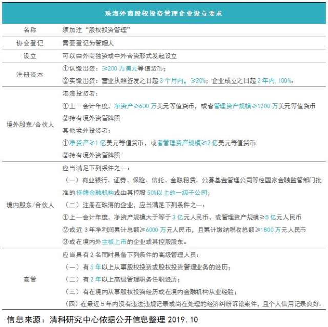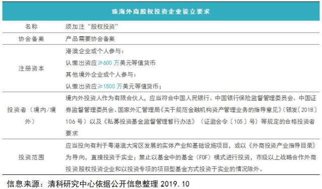 以要求相对全面的珠海为例,对外资机构(基金)的注册资本、股东、投资范围和高管均有明确要求。