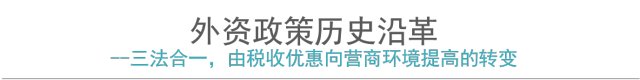 改革开放初期,我国陆续制定了“外资三法”,即《中华人民共和国中外合资经营企业法》(人大常务委员会委员长令第7号)(1979)、《中华人民共和国外资企业法》(1986)、《中华人民共和国中外合作经营企业法》(1988),成为外商投资政策的奠基石,在我国引进外资进程中发挥了重要作用。2019年,十三届全国人大二次会议表决通过《中华人民共和国外商投资法》,取代“外资三法”,成为外商投资领域的基础性法律。在改革开放40年中,我国外资政策导向经历了三次转变,逐步由招商优惠转变为优化营商环境政策。