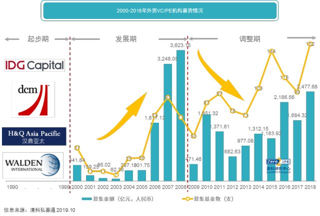 图2 2000-2018年外资VC/PE机构募资情况