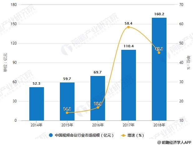 1、2018年中国视频会议行业市场规模超160亿