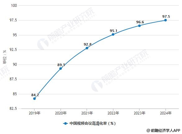 2019-2024年中国视频会议高清化率预测情况