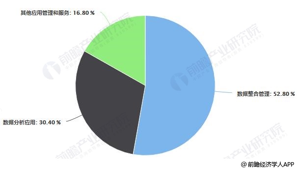 2018年中国健康医疗大数据细分市场结构占比统计情况