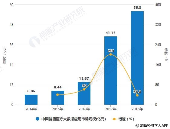 2014-2018年中国健康医疗大数据应用市场规模统计及增长情况