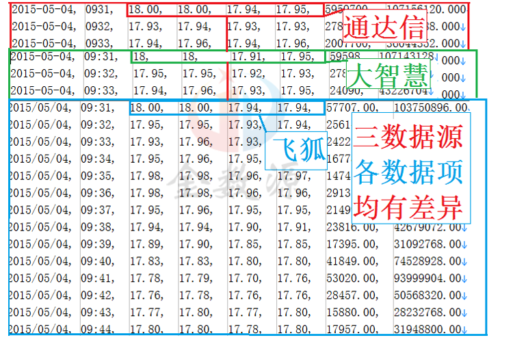 我们选择浦发告银行同一时间三类数据源的样本,做如下对比