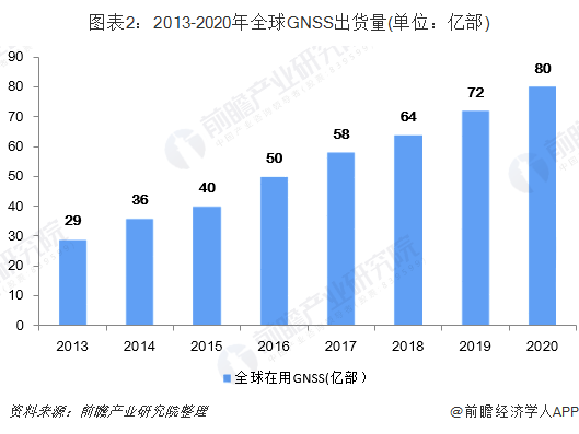 根据欧洲全球卫星导航系统管理局(GSA)发布的《全球卫星导航系统(GNSS)市场报告》(第五版)数据显示,2017年,全球在用的GNSS设备约58亿台,预计到2020年,其数量将达到80亿台。