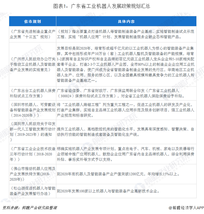 广东之所以能够取得如此出色的成果,并成为现阶段归纳机器人产业发展的重要高地,离不开国家政策的带动和落实。广东省是早一批通过“机器换人”寻求制造业转型出路的省份之一,为了促进机器人产业的快速发展,从2014年开始,深圳、广州、东莞、佛山等地就相继出台了多项相关鼓励政策。