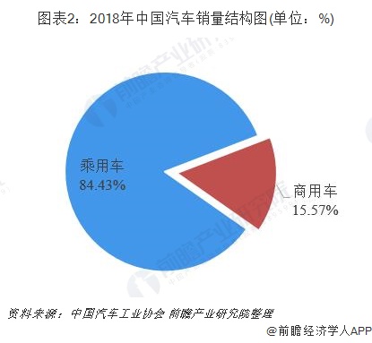 2012-2016年,我国乘用车占汽车总销量的比重整体呈上升的趋势,均保持在80%以上。2016年,我国乘用车占汽车总销量的比重约为86.97%,达到近些年最大值,随着乘用车市场占有率出现连续下滑,2018年,我国乘用车销售量占汽车总销量比重下降到84.43%。