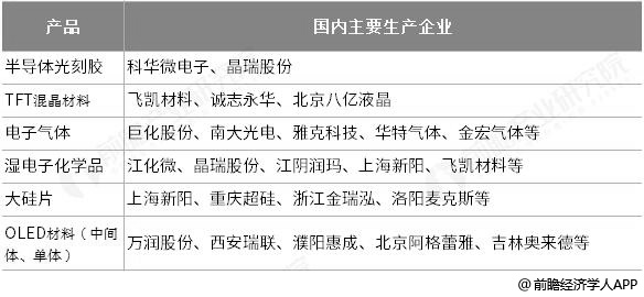 中国电子化学品主要生产企业统计情况