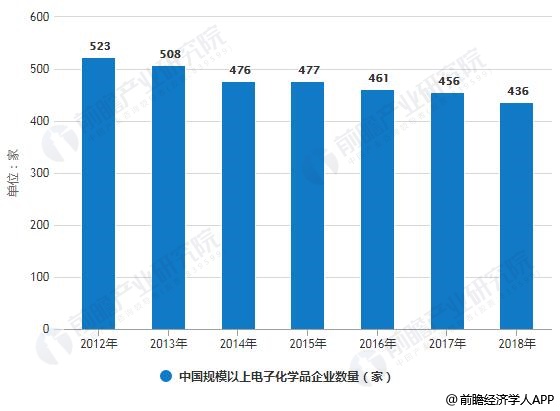 2012-2018年中国规模以上电子化学品企业数量统计情况及预测