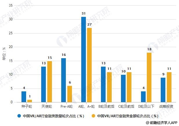 2018年中国VR/AR行业融资轮次分布情况