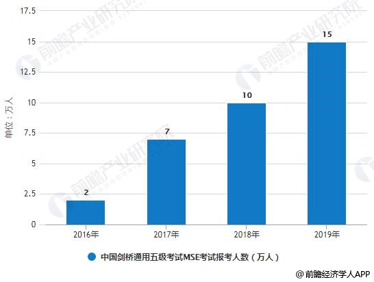 近年来剑桥系英语受到全国家长的追捧。剑桥系英语考试按年龄和难度,分为:剑桥少儿英语考试(CYLE)、剑桥通用五级考试(MSE)和雅思考试。其中,针对青少年的考试为剑桥少儿英语考试(CYLE)及剑桥通用五级考试(MSE)(分别为:KET、PET、FCE、CAE、CPE)。相关资料显示,2016年全国约2万学生报考,2017年MSE考试突然爆红,报考人数增长至7万余人,2019年报考人数突破15万人!