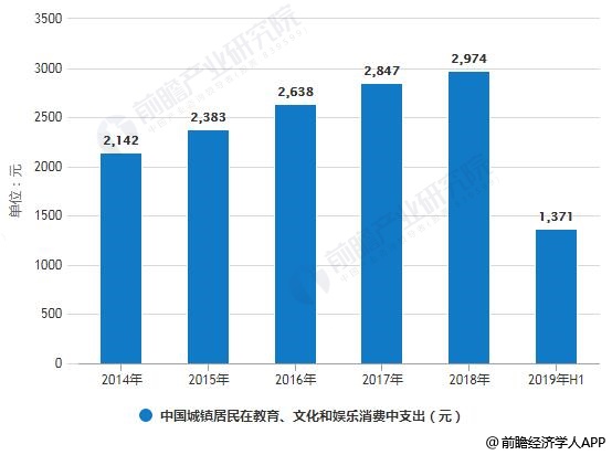 另外,随着我国国民生活水平提高,家长对少儿英语的重视促进少儿英语培训市场的开阔。根据艾瑞咨询的调研数据显示,目前我国87.2%的家长赞同孩子在5岁以内学习英语,62.7%的被调查家长认为让孩子学习英语的原因是英语作为必备的语言工具,有非常强的实用性。因此,近年来我国城镇居民在教育、文化和娱乐消费中的支出呈现出不断上升的趋势,2018年我国城镇居民在教育、文化和娱乐消费中的支出达到2974元,消费支出占整体消费的比重达到11. 2%。