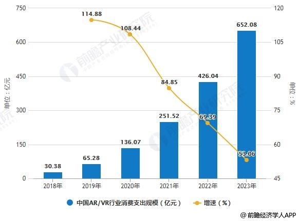 5、中国VR市场需求将不断提升,2023年消费支出有望破650亿元