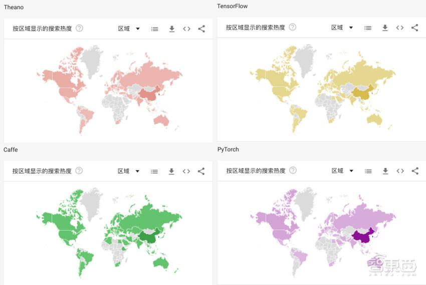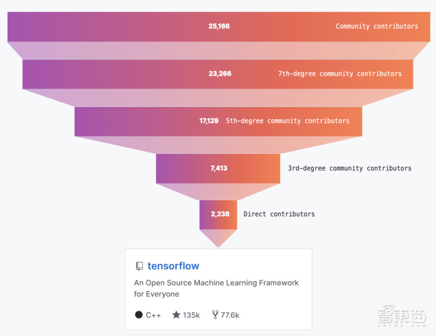 去年4.6万个项目依赖于这一平台,贡献人数从2238位直接贡献者增长到25166位社区贡献者。开发人数、贡献人数、受欢迎程度(star数)、谷歌搜索量都碾压其他一众开源AI框架。
