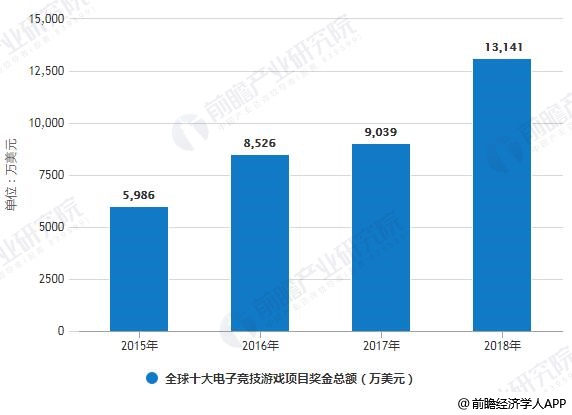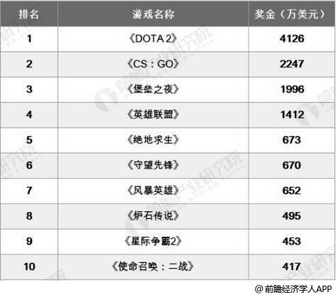2018年全球奖金最高的十大电子竞技游戏奖金统计情况