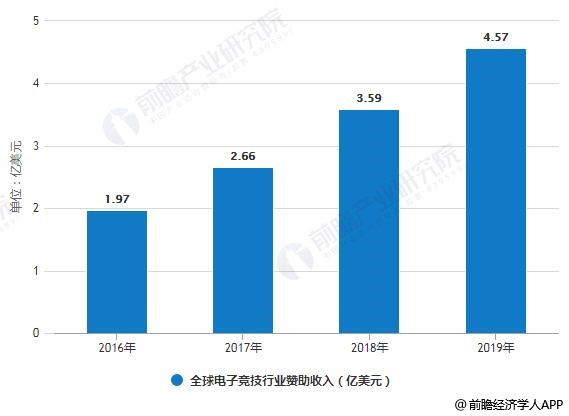2016-2019年全球电子竞技行业赞助收入统计情况及预测