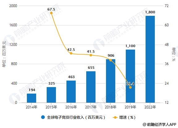 2014-2022年全球电子竞技行业收入统计及增长情况预测