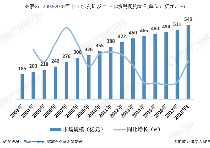 2、中国洗护发行业市场规模超过500亿