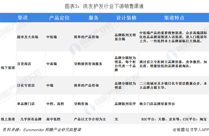 洗发护发产品的下游销售主要渠道有:超市及大卖场、百货商店、日化专营店、单品品牌门店和线上渠道。线上渠道又分为B2C和C2C等。